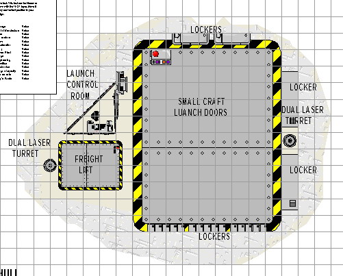 'D' DECK:  The lowest deck at the bottom of the asteroid is a small craft bay.   Includes access to
