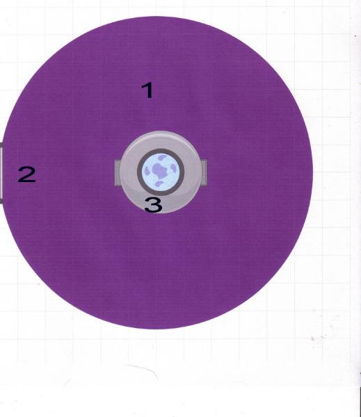 living area (1), and a central pillar (3).  The interior of the central pillar encloses a room