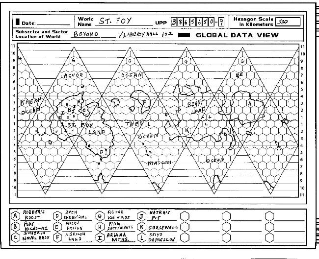 ST. FOY:  24 hours from Irhean at 1G acceleration. Capital of the Duchy of St. Foy. 1 Moon, Avery 800 miles diameter.