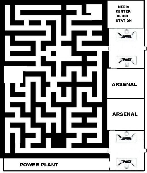 of the living quarters is a two man security cubicle.  To the south of the processing room