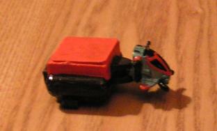 Cab comes from a micromachine vehicle, the cargo carrier from odd pieces from my scrap box.