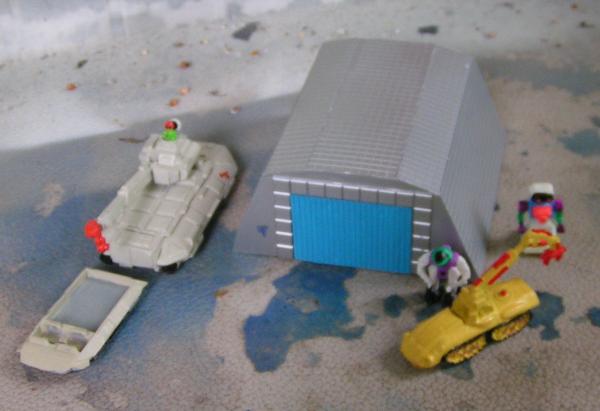 micromachine Z-bots. The yellow vehicle is the remains of a Battletech vehicle
