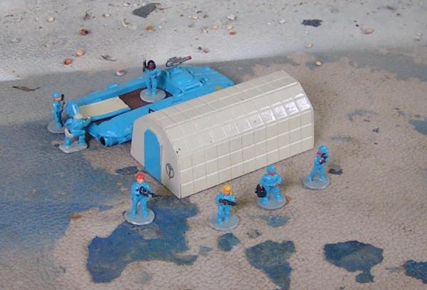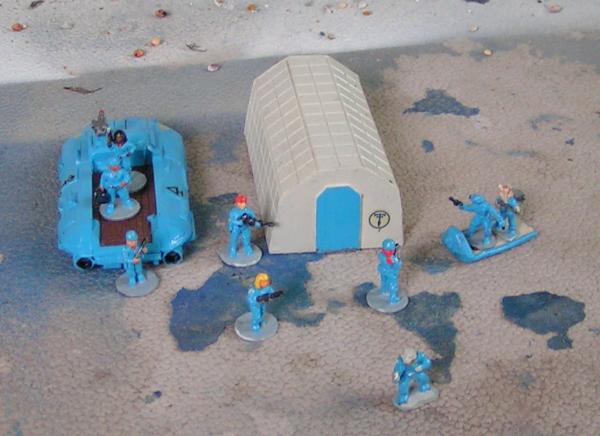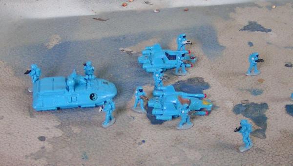 A recon patrol of Imperial scouts. Rebelminis Earthforce figures, GZG scout grav