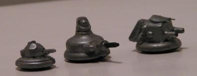 The left unit is a toy tank turret with a new muzzle,chassis out of odd pieces & putty. The one on the