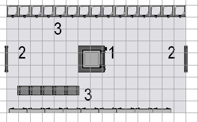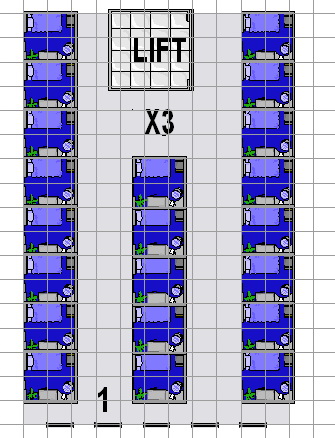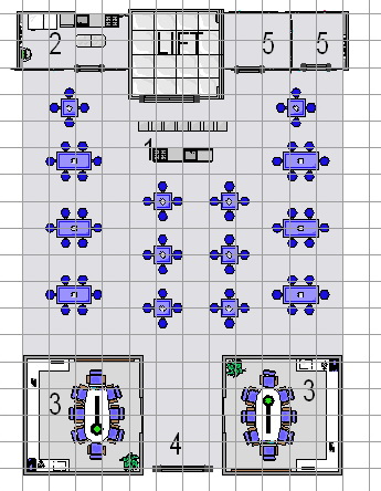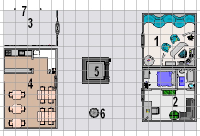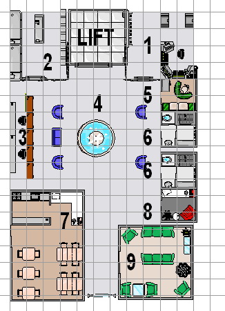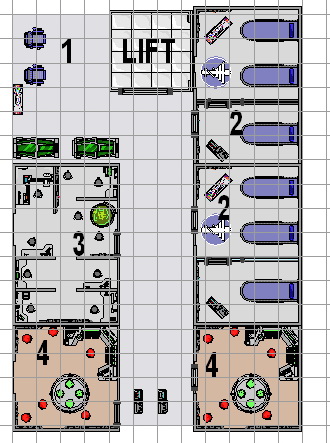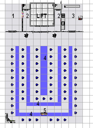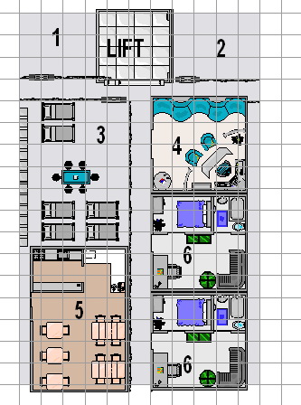 1. Dock Doors. 2. Hotel Ermehahd Entrance. 3. Santanna Bldg Entrance. 4. Lift. 5. Landing Pads.